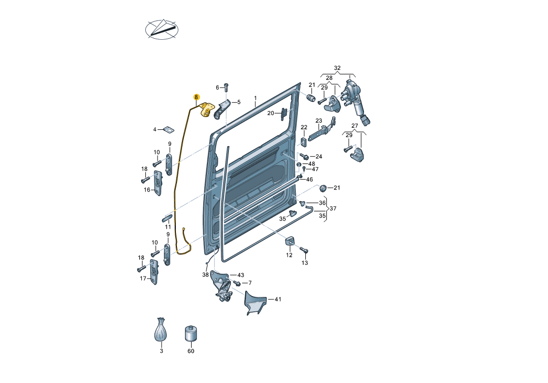 Кронштейн сдвижной двери верхний правый VAG 7E0843436C